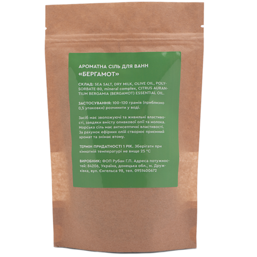 Ароматна сіль для ванн “Бергамот” – справжній релакс та ароматерапія в звичайній ванні вдома. Неперевершена аромакомпозиція з ефірних олій створює неповторну атмосферу, підіймає настрій та додає сил після насиченого дня.